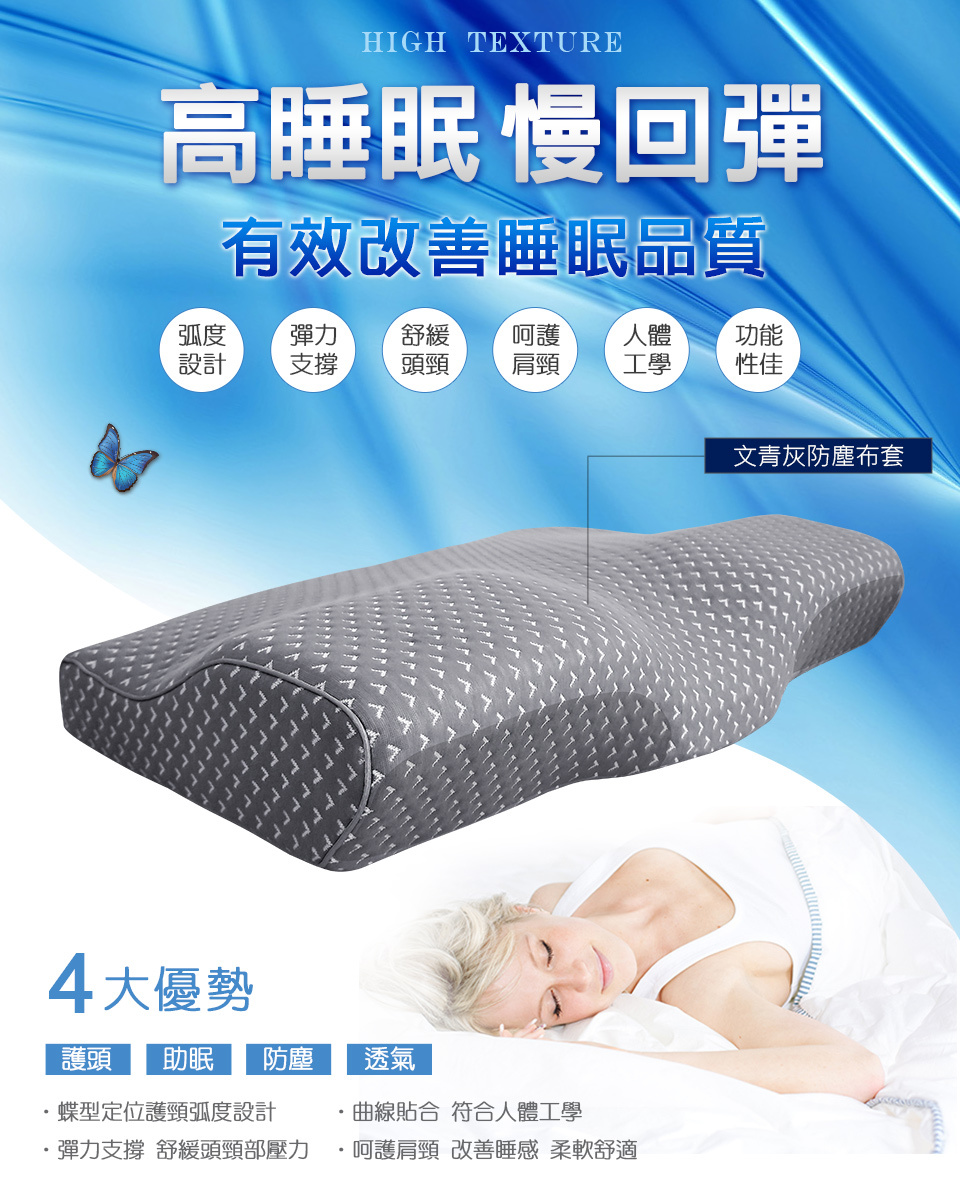 ◆ 蝶型定位釋壓弧度設計,舒緩頭頸壓迫
