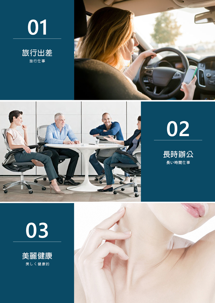◆雙向拉伸曲線,減少頸部皺紋形成,舒緩肩頸疲勞