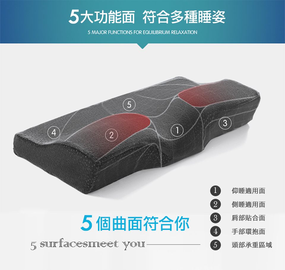 ◆ 蝶型定位釋壓弧度設計,舒緩頭頸壓迫