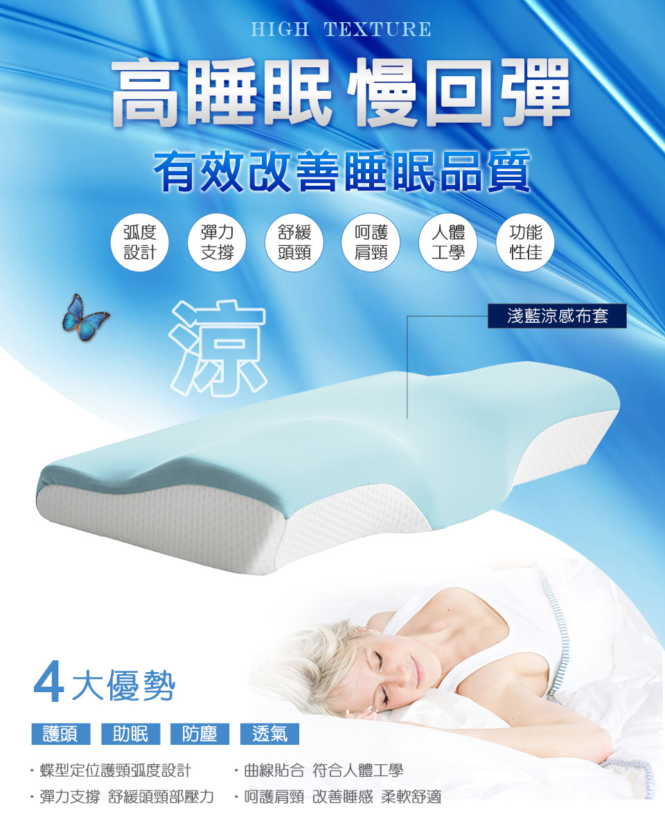 ◆ 蝶型定位釋壓弧度設計,舒緩頭頸壓迫