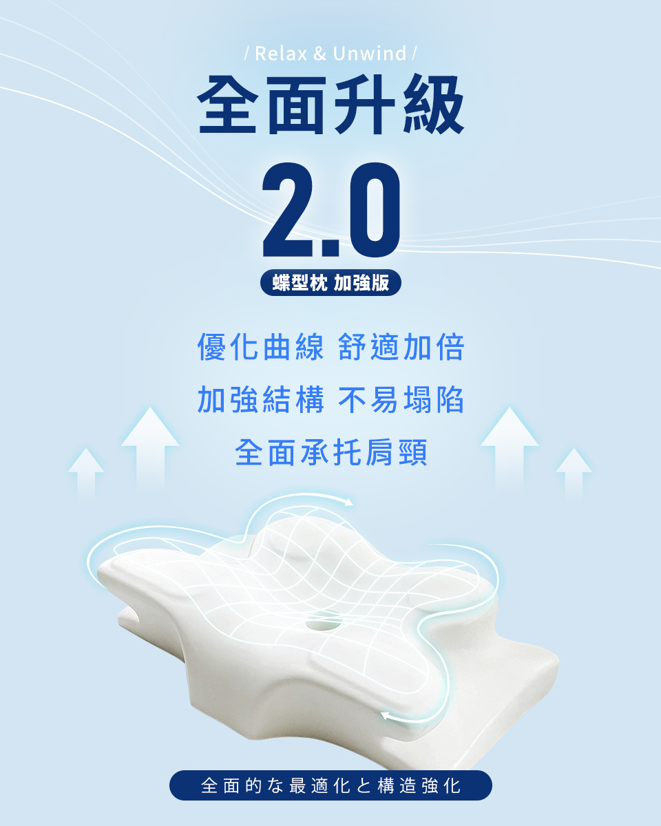 ◆蝶型枕2.0加強版,優化曲線舒適加倍,加強結構不易塌陷
