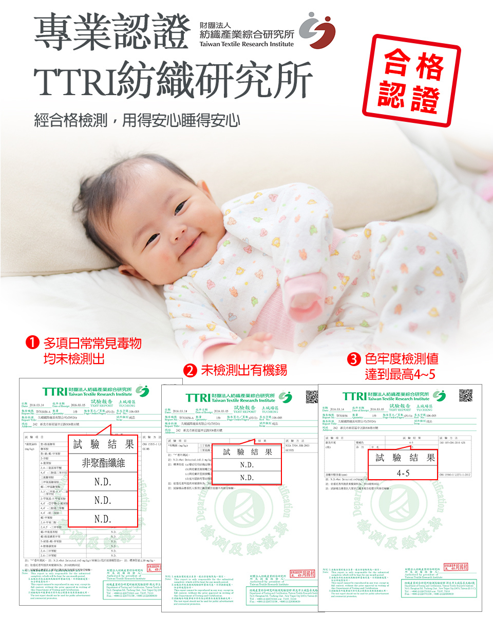 ◆經TTRI紡研所合格認證,品質安心