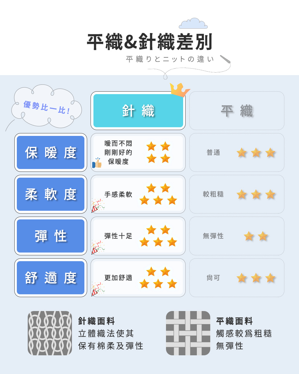 ◆輕盈軟綿針織,親膚透氣