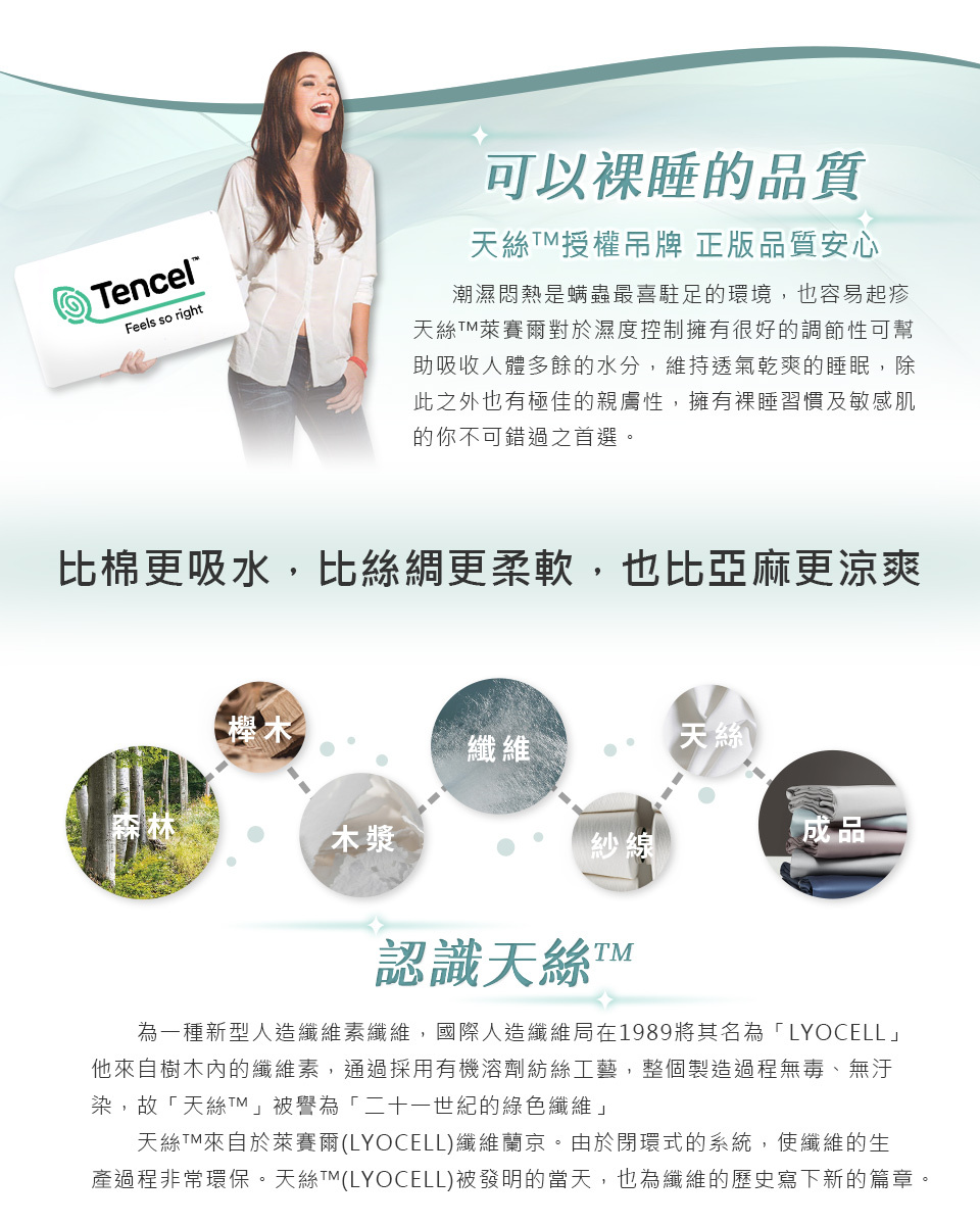 ◆透氣性佳天絲®布,舒適不悶熱